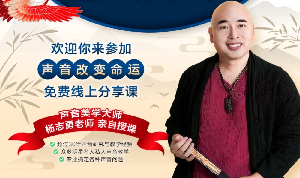限时特价优惠 20th - 21st Oct 2025 (星期一&二) 8PM - 10PM 线上zoom 重启你的声音, 重启你的人生 限时免费报名!!! 原价 USD 299 20th - 21st Oct 2025 (星期一&二) 8PM - 10PM 线上zoom Hours Minutes Seconds 我要报名! 注:一旦超过课程限定的人数,将会立即恢复原价。 哪三种类型的人群 应该参加【声命重启】声音美容课程 01 体弱多病 身心俱疲 经常生病,恢复得很慢? 睡再久还是很累? 肩膀、背部、膝盖常年酸痛麻痹? 长期吃药却仍控制不住三高? 02 事业不顺 诸多瓶颈 身为公众人士,声音不符身份,缺乏魅力? 升职加薪总是与你无缘? 生意每次都很难成交? 即使努力优秀,领导还是看不到你? 03 家庭关系紧张 沟通无效 与家人常有冲突,争吵不休? 和伴侣沟通困难,说一句吵一句? 明明想表达A,出口却总是B? 感受不到爱,也给不出爱? 虽然声音是与生俱来的, 但它绝不是一成不变的。 杨志勇老师说: “声音可以改变命运。” 只需三秒,杨老师就能从 你的声音中听出你的 性格、事业、婚姻和财富走向。 只要学会正确发声, 打开身体内在的五个“喇叭”, 就能唤醒气血,焕发光彩, 练就磁性魅力之声。 掌握身体与声音的内在力量, 你将在人群中发光, 在职场上更有影响力, 在家庭中重拾温暖与连接, 彻底翻转你的人生轨迹。 限时免费报名!!! 原价 USD 299 20th - 21st Oct 2025 (星期一&二) 8PM - 10PM 线上zoom Hours Minutes Seconds 我要报名! 注:一旦超过课程限定的人数,将会立即恢复原价。 2天线上课程, 你将学到什么? 第一天 唤醒磁性之声 掌握正确发声方法, 练出不会疲惫的嗓音, 激活血脉, 让声音更有能量与魅力。 第二天 疗愈声音的问题 针对性解决豆沙喉、 娃娃音、咬字不清、 结巴等困扰, 什么是声音性格五行, 如何去调整声音,逆袭人生! 免负责声明: 慧启教育有权更改课程内容 你是否也面对 以下问题 讲话很容易累,很容易嘶哑? 唱歌高音上不去,低音下不来? 讲话缺乏感染力? 常常上气不接下气? 在社交场合很难与人建立连接? 有慢性疾病,每天需要吃很多药? 限时免费报名!!! 原价 USD 299 Hours Minutes Seconds 注:一旦超过课程限定的人数,将会立即恢复原价。 学生见证 Testimonials 上了王者课程后, 气血充盈,身体轻盈, 连爬三楼都不再是负担。 情绪低落时学习呼吸法, 竟然改善了多年的胃病与头晕, 重获轻松自在。 长年脚痛困扰, 经过训练后脚痛与 失眠都明显改善, 走路轻快,夜晚安眠。 曾经脚痛到无法久站, 夜里常被痛醒, 如今通过魅力声音训练, 不仅脚与喉咙舒畅, 还摆脱了护膝带的依赖。 肩胛骨上的硬块多年无解, 经杨老师妙手调理后, 不仅消失,连颈项、 头部也得到了全方位锻炼, 肌肤光滑,收获巨大。 疫情后身体虚弱, 常年奔波中医 与按摩也无济于事。 参加魅力声音课程后, 不仅自己身体改善, 连先生的鼾声也奇迹般消失。 曾因不自信 而两年间暴胖30公斤, 导致膝盖与腰部严重疼痛。 幸得杨老师调理打通, 全身焕新,再无疼痛困扰。 本来开口困难, 嘴巴和脖子僵硬。 教练耐心指导细节, 训练后竟连深度伤口都在 三天课程中意外痊愈。 参加《声音改变命运》 三天课程,身体排出大量浊气, 整个人轻盈通透, 感恩杨老师的引领。 学员见证: 从UIUC到普林斯顿, 梦想照进现实 “我被普林斯顿计算机硕士项目录取了!” 张家口同学在微信中兴奋地向王琨老师报喜。他在国内某重点中学国际部完成高中学习,大学本科先被UIUC(伊利诺伊大学香槟分校)录取,后转入计算机专业。在保持优秀成绩的同时,积极联系清华教授和本校导师参与科研,还辅修了统计学专业。 这一切的背后,是他在王琨老师课程中打下的坚实基础。 “好嘞,等师父的奖学金哈哈哈!” 这不仅是一份喜讯,更是一段成长的见证——从课程中的思维训练、项目指导到留学规划,张同学一路走来,始终没有放弃对卓越的追求。 最终,他收到了来自普林斯顿大学的硕士录取通知书。 学员见证: 斩获悉尼大学录取, 踏实前行终见曙光 “师傅,我悉尼大学录取通知书到了!” 在拿到录取通知书的那一刻,这位来自王琨老师课程的567号学员,第一时间分享了这份喜悦。他不仅提交了悉尼大学的offer文件,还晒出了与同学和老师的讨论截图。 “心已落地,太开心了。” 从不确定到安心落地,从焦虑等待到喜悦释然,录取通知书不仅是一张纸,更是这位学员努力和坚持的回报。他在王琨老师的指导下,从择校、申请、到材料准备,每一步都稳扎稳打,终于实现梦想。 学员见证: 从学习到创业, 梦想从这里启航 “今天我人生第一家公司正式创立了。” 567号学员再次向王琨老师报喜,这一次不是录取通知书,而是创业成功。他激动地晒出营业执照,并表示未来还将为课程体系中的学员和助教提供服装定制服务。 “以后咱们慧宇的学员服装和助教服装我这边也可以定制。” 从学业提升到企业创办,他的变化见证了课程不仅教知识,更激发行动力与实战能力。在老师的鼓励与指引下,他用自己的方式回馈成长,也踏上了属于自己的创业之路。 常见问题 FAQ 请问这个课程适合几岁的人参加? 答:课程开放给所有有心通过改变声音,改变命运的人,年龄不限。 我已经是成年人,我还能改变自己的声音吗? 答:肯定可以!杨老师也是在成年以后才改变自己声音,更自创出一套非常适合成年人的声音功法。欢迎报名参加。 我讲话很小声,也很内向,上台会怯场,请问适合